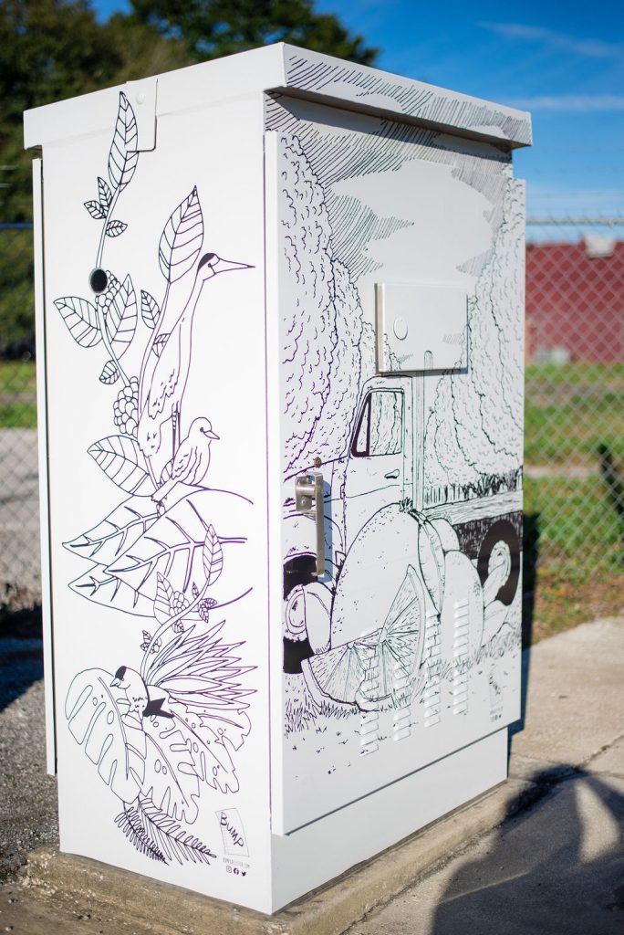 Many talented artists submitted designs to decorate Plant City’s electrical boxes, and we’re honored to say we were among the selected winners. Winners were unveiled Sunday, November 24th at the Plant City Art Box Unveiling Walking Tour event, held in partnership by the City of Plant City, Plant City Main Street and MAKE Plant City.